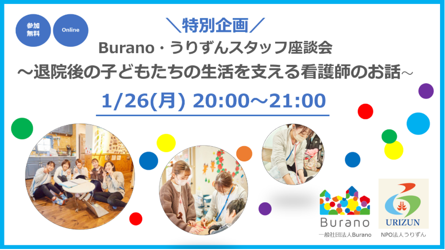 \1/26(月) 20:00~【特別企画】Burano・うりずんスタッフ座談会~退院後の子どもたちの生活を支える看護師の...