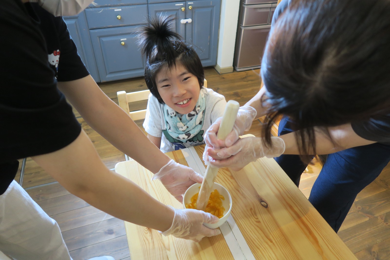 お兄さんと一緒に作るの楽しいー♬と、とても嬉しそうです😊