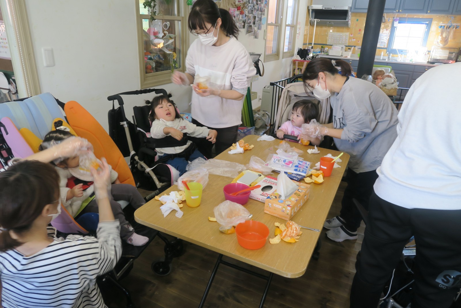 スタッフのゆいちゃんが持って来てくれたゆずを使って遊びました✨