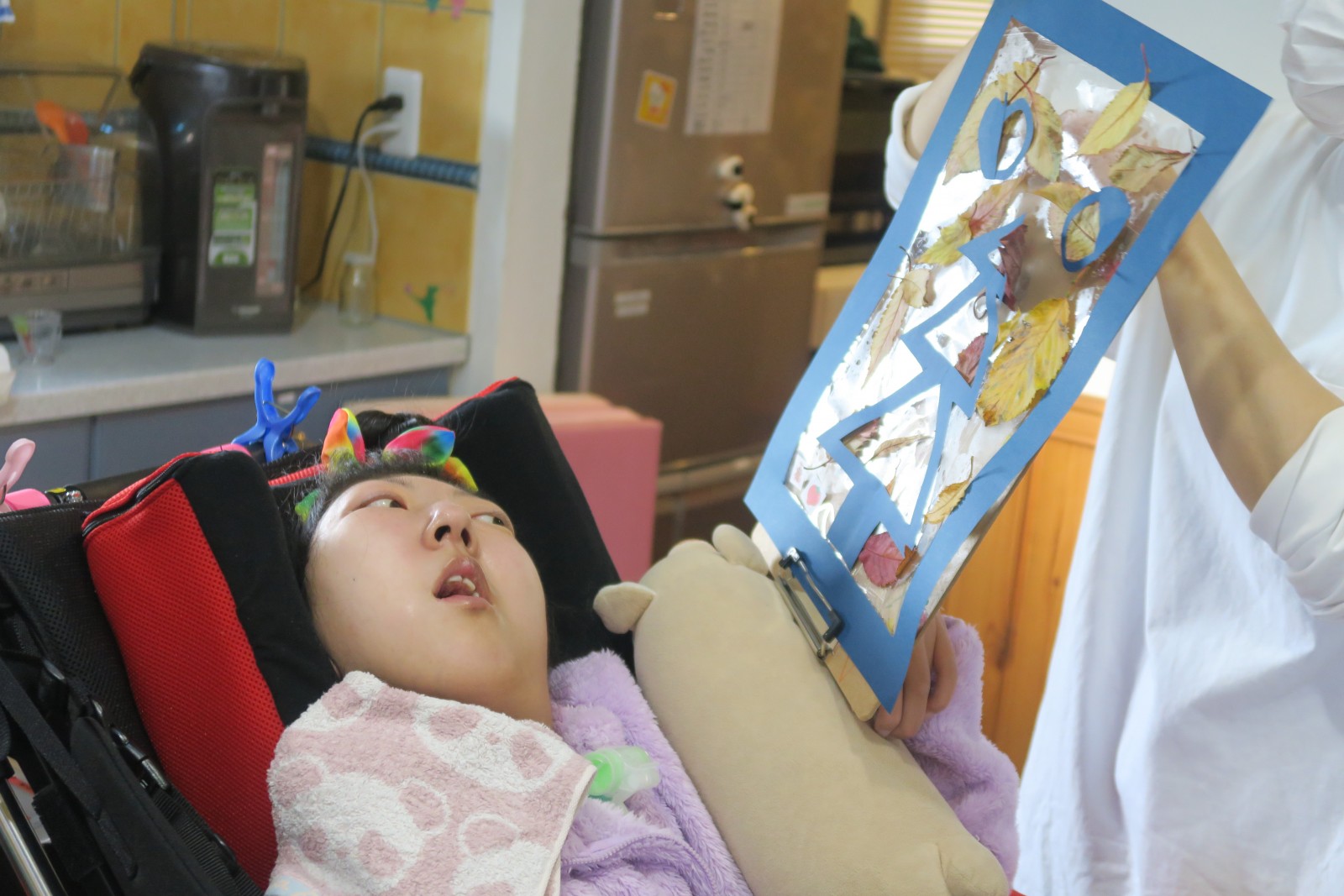 先日お友だちが遊びに行った公園の落ち葉を使って