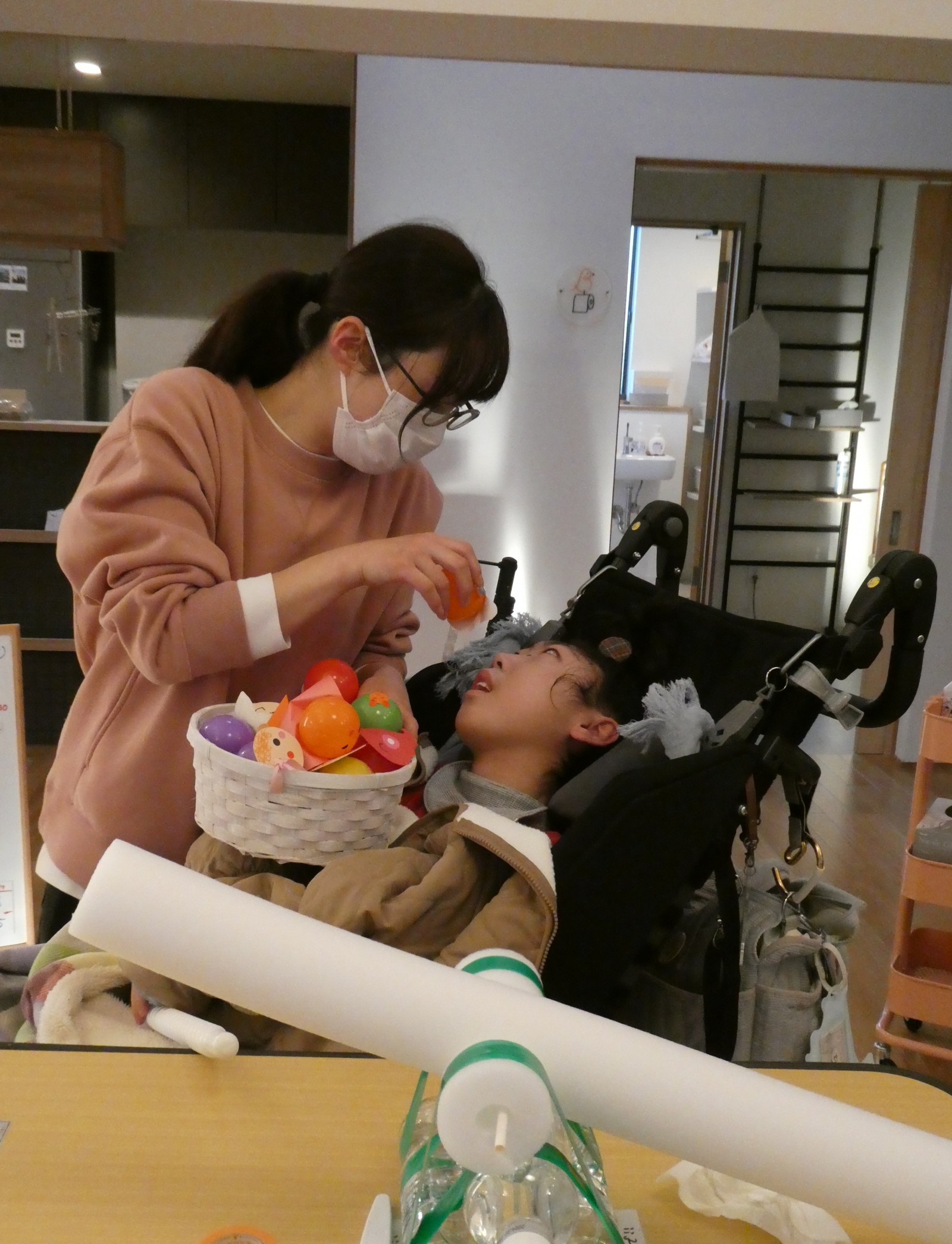 「ボールをくるっと巻いてみる?」と、話しながら作りました