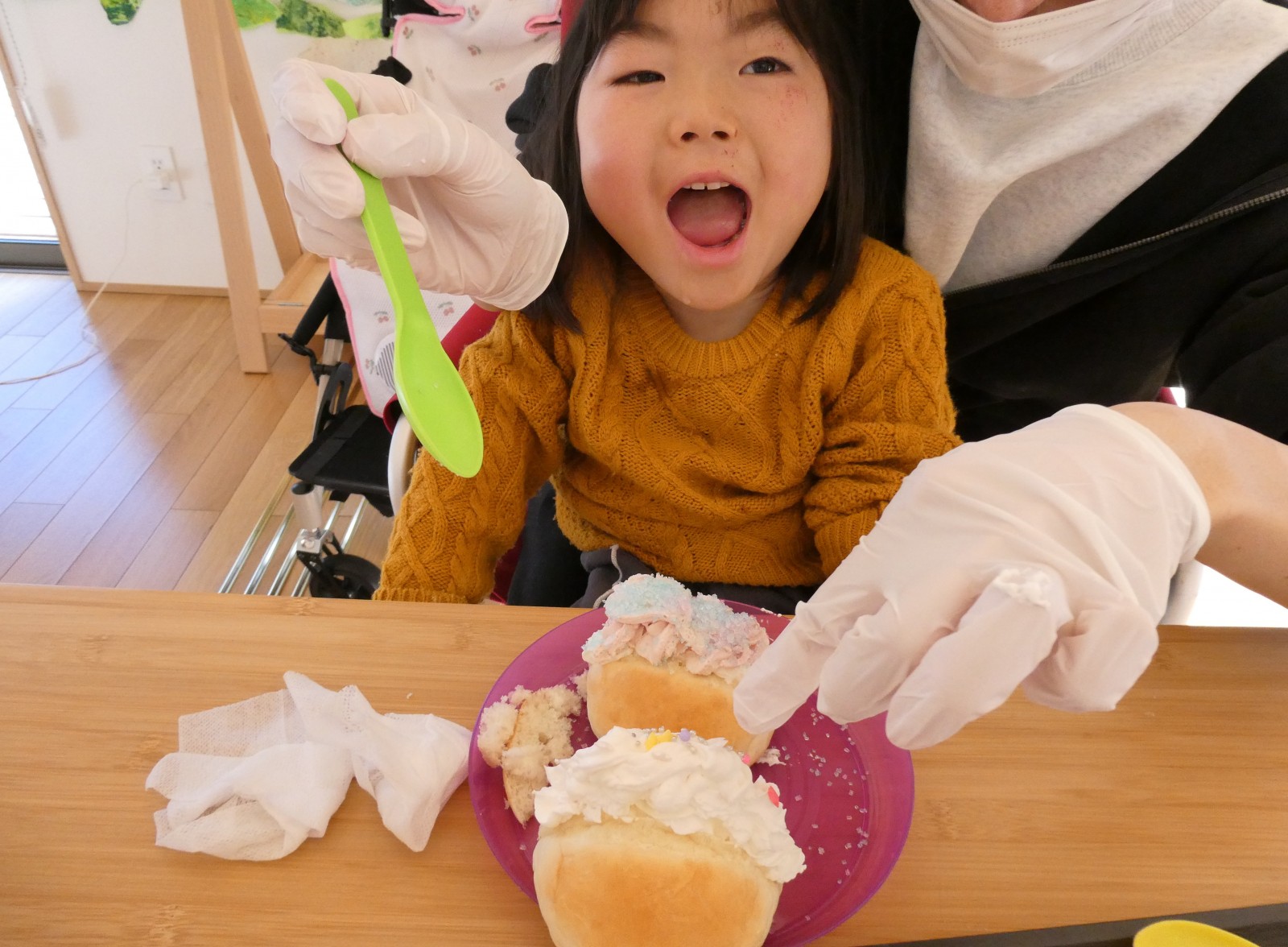 そこへスタッフのんちゃんが生クリームをムギュッと絞りました
