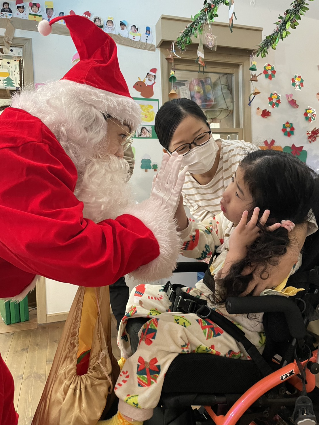 サンタさんの登場にとっても喜んだお友だちもいれば、