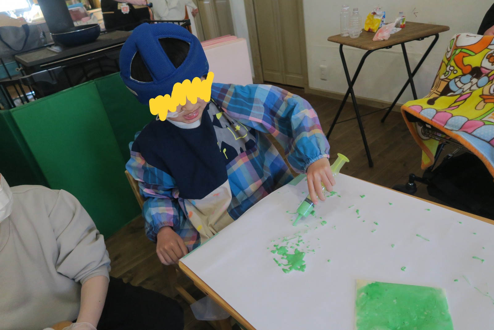 スプーンですくって塗ってみたり、シリンジで吸い上げて出してみたり。