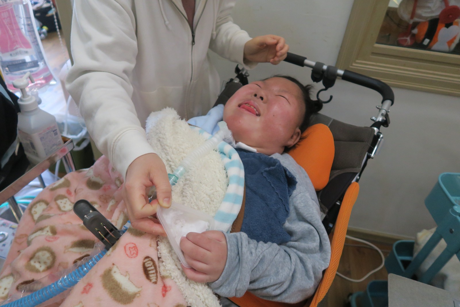 届いた雪を握って冷たさや、雪の柔らかさを感じていました✨