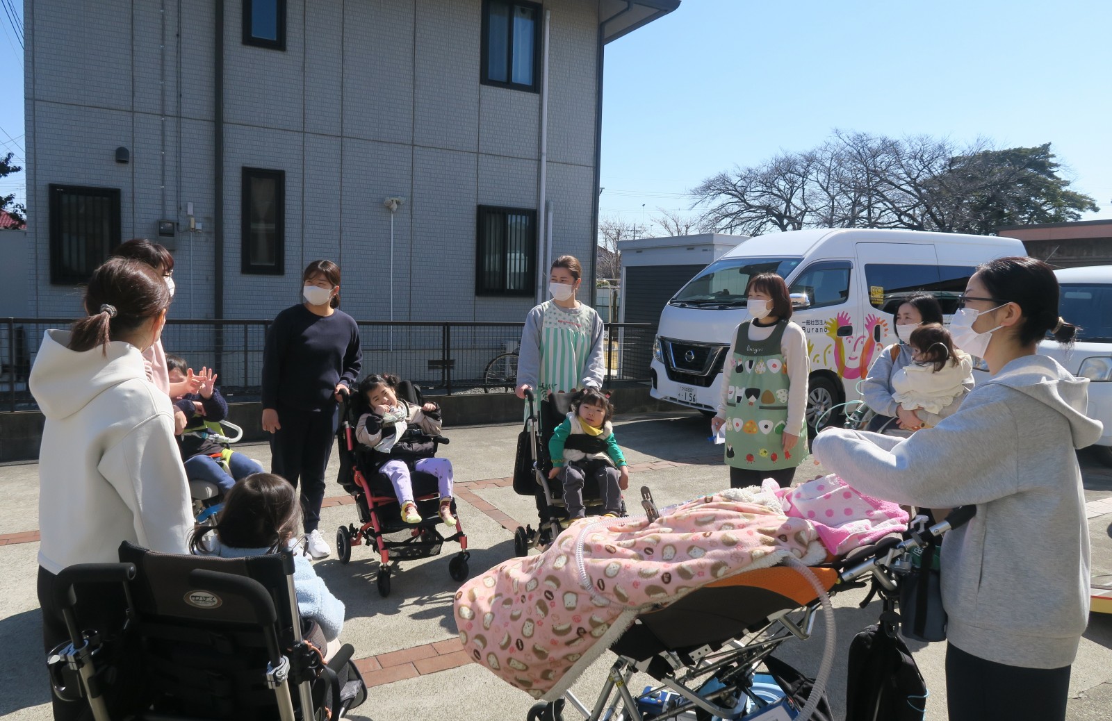 子どもたちはしっかりとバギーに乗り手足が出たり、壁などに当たることがないかを確認しながら一人ずつ外へ出ました。